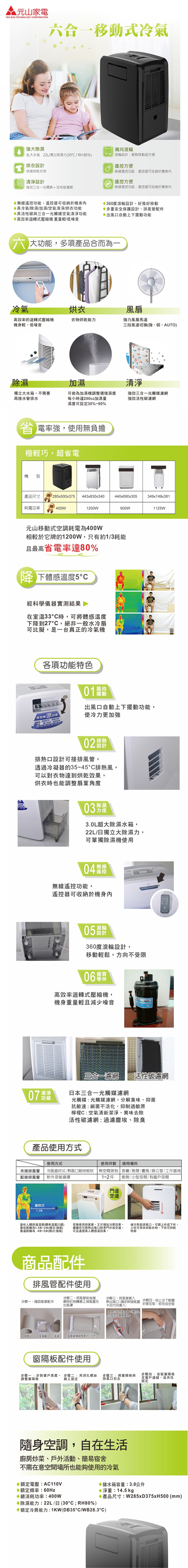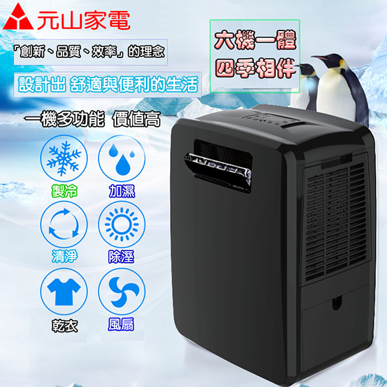 品名:【元山】台灣製造節能 超省電六合一多功能移動式冷氣/除濕機/清淨機(YS-3007SAR)